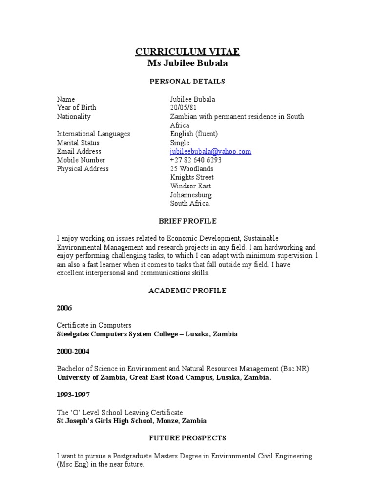 Curriculum Vitae Stephen Joel Chifunyise Date Of Birth 21 September Edinburgh Road Vainona Harare Zimbabwe Pdf Free Download from docplayer.net Curriculum vita fomat, curriculum vita model, curriculum vita model, example of a curriculum vitae created date: Tips for writing your cv. It does not matter how long it is taking you to write it or how pretty it is, the employer will take a few seconds to form an opinion, so the first impressions really do count. If you aren't sure where to start with your own cv, take a look at our administrative assistant cv example. Excel cv is a certainly the best in cv writing in zambia. Sample of a cv in zambia : · ba economics and business administration (university of zambia) · mba finance and business strategy (university of birmingham, united. Our online essay writing service delivers master's level writing by experts who have earned graduate degrees in your curriculum vitae sample zambia subject matter.